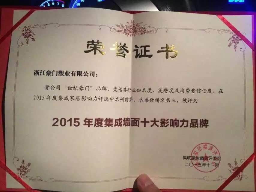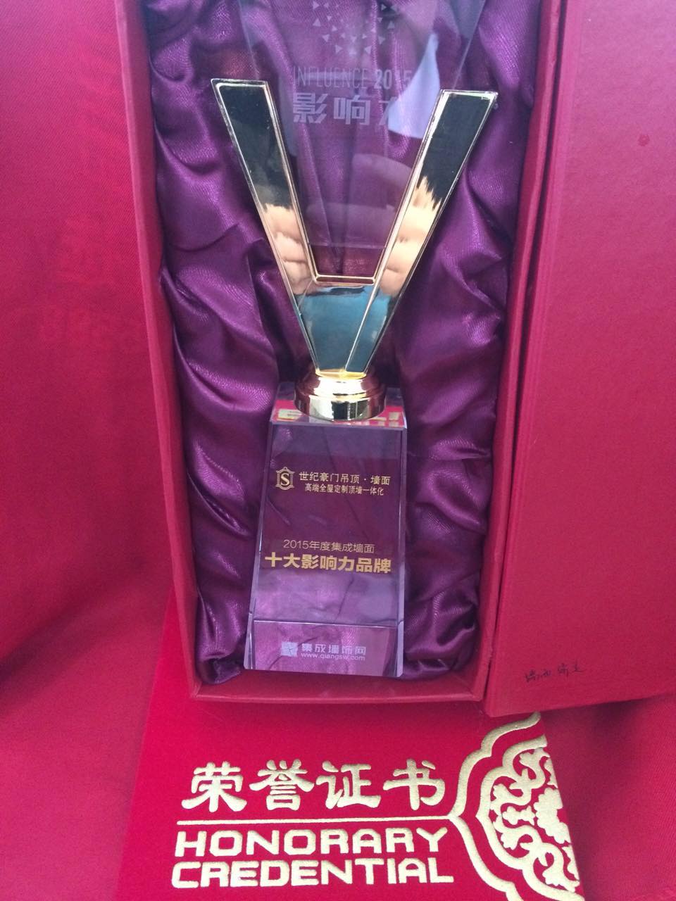 世紀豪門吊頂受邀參加中國吊頂網頒獎典禮!榮獲“2015年集成墻面十大影響力品牌”、又是一年收獲之際,我們將帶著榮耀踏上新的征程,為中國集成墻面的發展作出我們應有的貢獻。