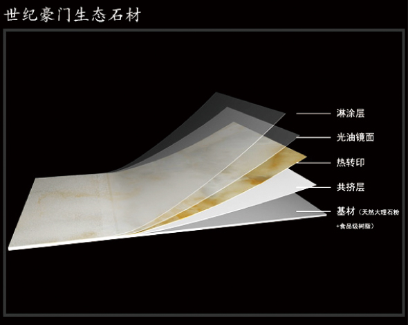 世紀豪門生態石材是由天然大理石粉加食品級樹脂材料高溫擠壓組成(天然石材與復合型石材),其用途不僅用于裝飾構件,而且用于墻體飾面。