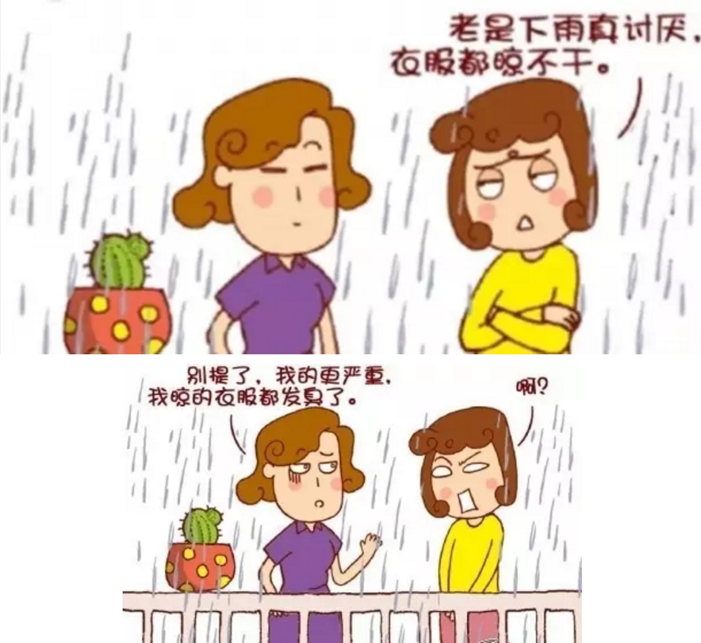 窗外的風呼嘯而過,天空灰蒙蒙一片,天色越來越暗,閃電刺亮了大地,雷聲吞噬了城市。 雨水開始施虐大地,天空連日陰沉,降水連綿不斷,時大時小,仿佛在制造一個悲傷的故事。雨水又來了,空氣變的潮濕起來,最令人頭痛的還是晾了好多天的衣服都沒干!怎么辦呢?