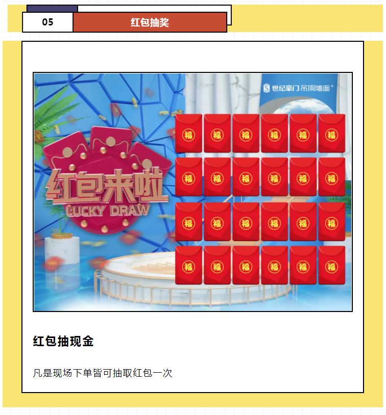 于當地世紀豪門專賣店領取特權卡 凡是憑借特權卡到工廠可參加廠購均可參與無購物抽獎 (價值1980元世紀豪門智能晾衣機,價值798元的世紀豪門毛巾機, 價值298元小米拉桿箱,價值168元決明子磁療枕頭)。 注意 1、此特權卡僅限本次廠購期間使用,廠購時間2021年6月12日。 2、此特權卡以戶為單位,每戶限使用一張。 3、此特權卡需在規定時間內使用,過期作廢。 4、特權卡最終解釋權歸本公司所有。